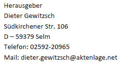 Für Links, die auf andere Seiten im Internet führen, gilt, dass der Herausgeber keinerlei Einfluss auf Gestaltung und Inhalt dieser Seiten hatte und aktuell hat. Der Herausgeber distanziert sich im Sinne einschlägiger Urteile hiermit ausdrücklich von allen Inhalten fremder Seiten, deren Inhalte er sich nicht zu Eigen macht.