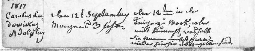 Carls Taufe ist zunächst im Borker Register zu finden, wurde aber auch in Cappenberg mit dem Zusatz eingetragen: den 12ten in der Kirche zu Bork [getauft]; aber nicht unrecht weshalb die Namen nebst … wieder hierhin abgegeben sind. Beide Register nennen als Paten Sr. Exellenz Minister v. Stein, Theresia Geisberg geb. Lohkampf [und] Doctor Henr. Westendorf. – Im Folgenden wird es „Charles“ heißen, wenn von diesem in Cappenberg geborenen Geisberg die Rede ist.